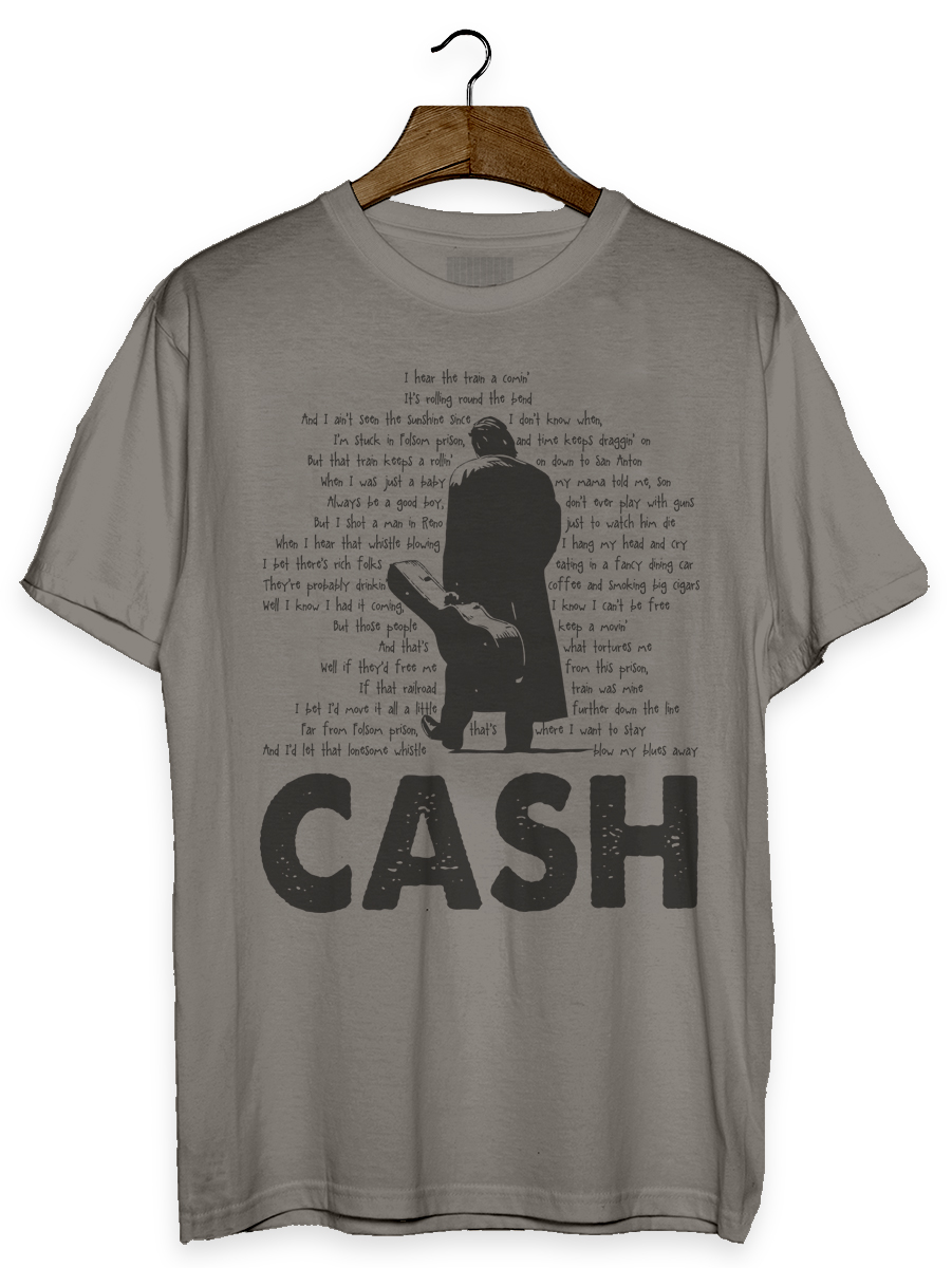Camiseta com estampa sobre o cantor Johnny Cash.