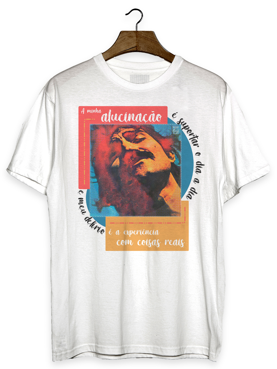 Camiseta com estampa sobre o músico brasileiro Belchior.