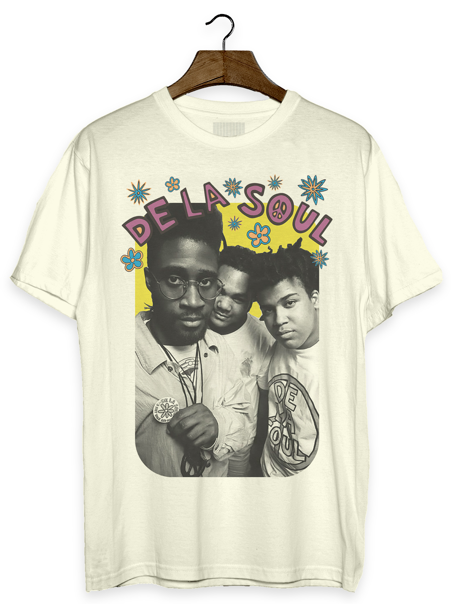 Camiseta com estampa sobre a banda de rap De La Soul.