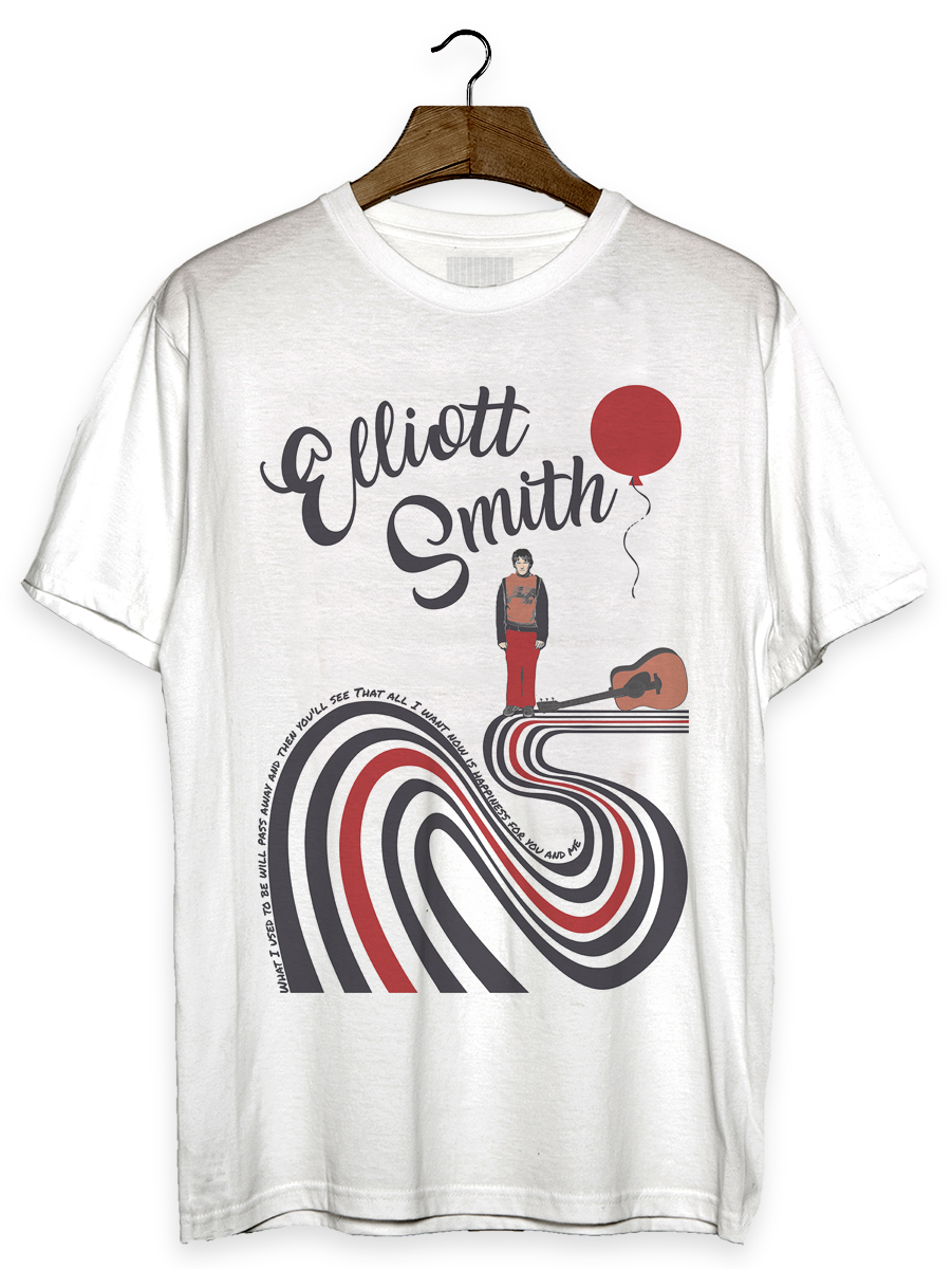 Camiseta com estampa sobre o músico Elliott Smith.