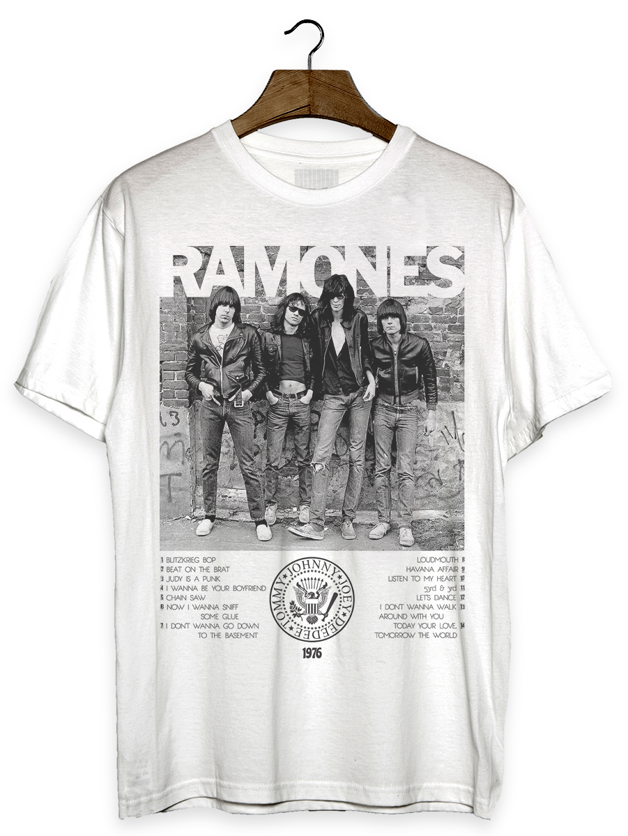 Camiseta com estampa sobre a lendária banda de punk rock, Ramones.