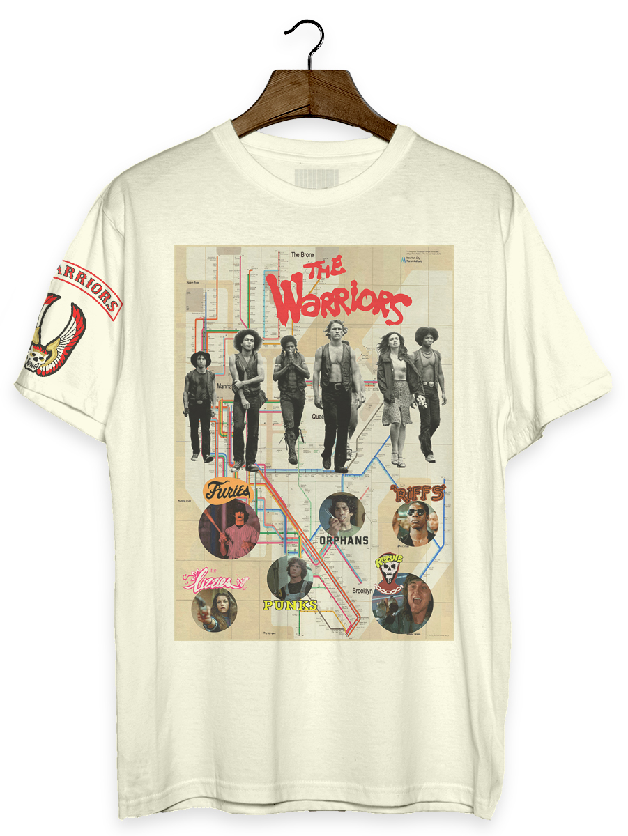 Camiseta com estampa sobre o filme The Warriors, de 1979, dirigido por Walter Hill.