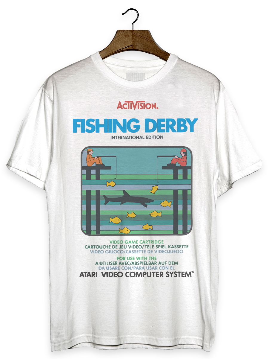 Camiseta com estampa sobre o game Fishing Derby, do console Atari 2600.